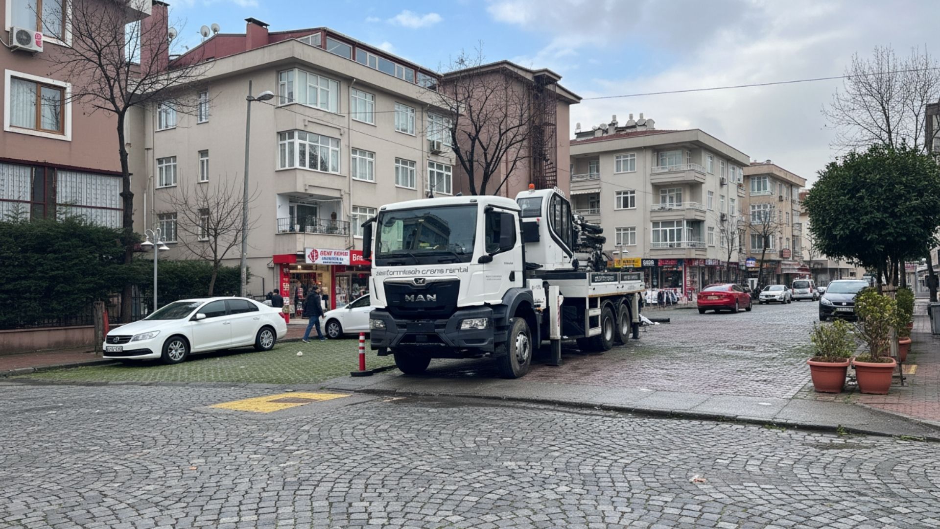 Site içlerindeki bakımlı bahçelerde, yürüyüş yollarında veya bina girişlerinde dev vinçlerle çalışmak zemine zarar verebilir.
